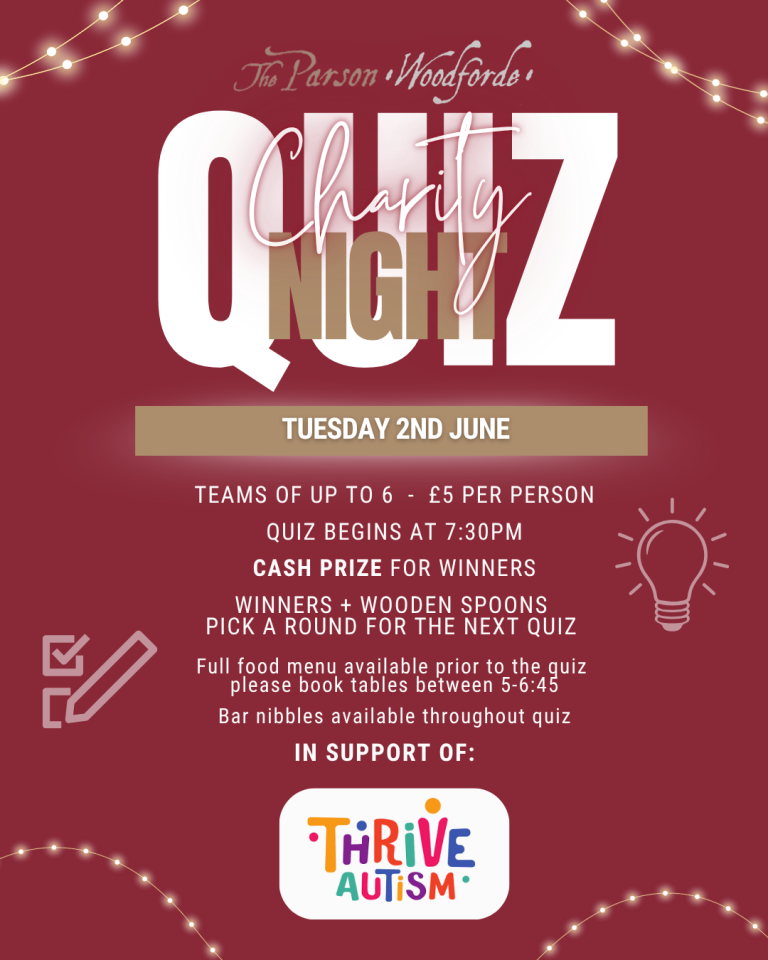 Join us for our next quiz night on Tuesday 2nd of June for a fun Quiz Night, all in support of THRIVE AUTISM charity 💙💕